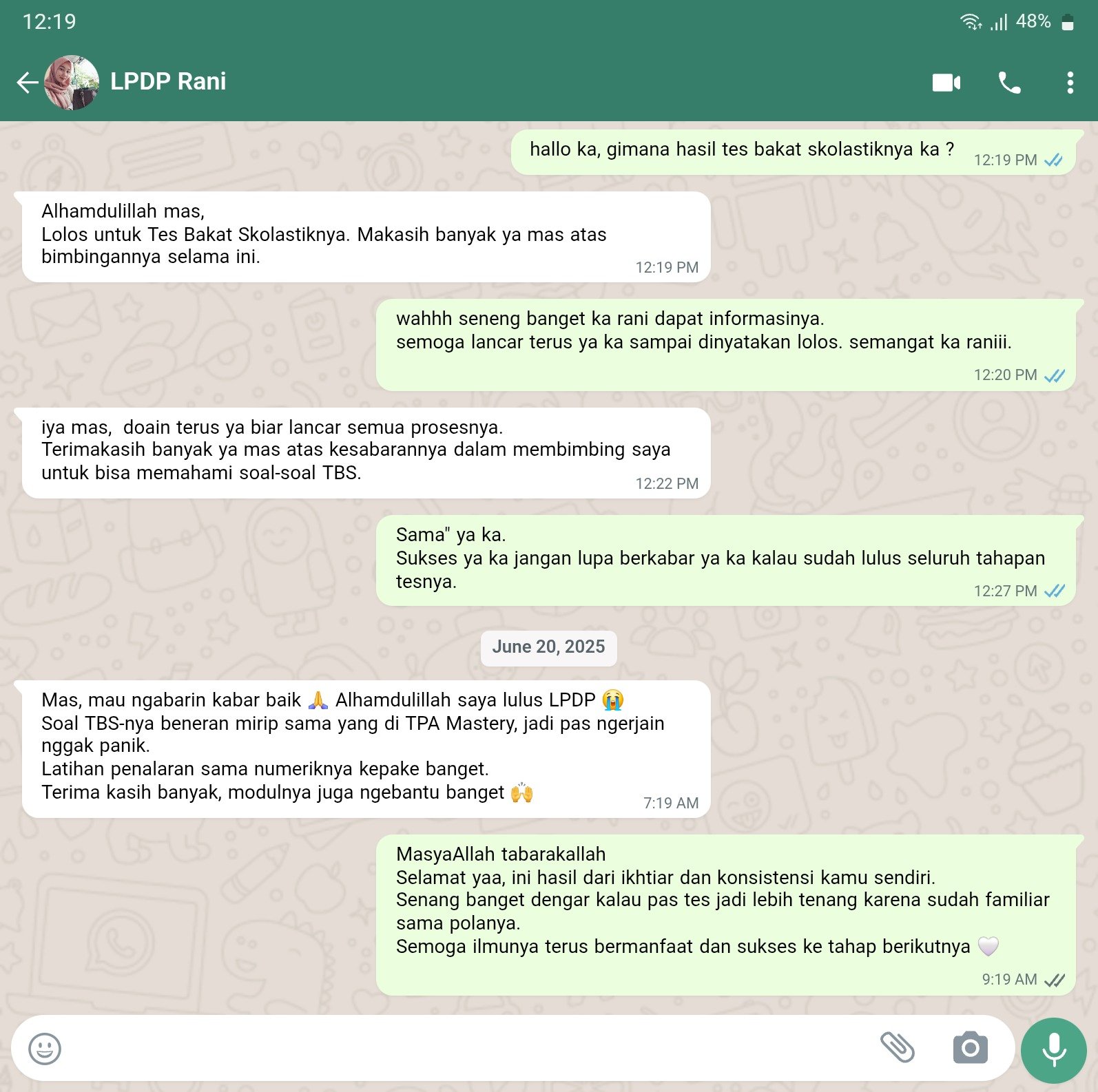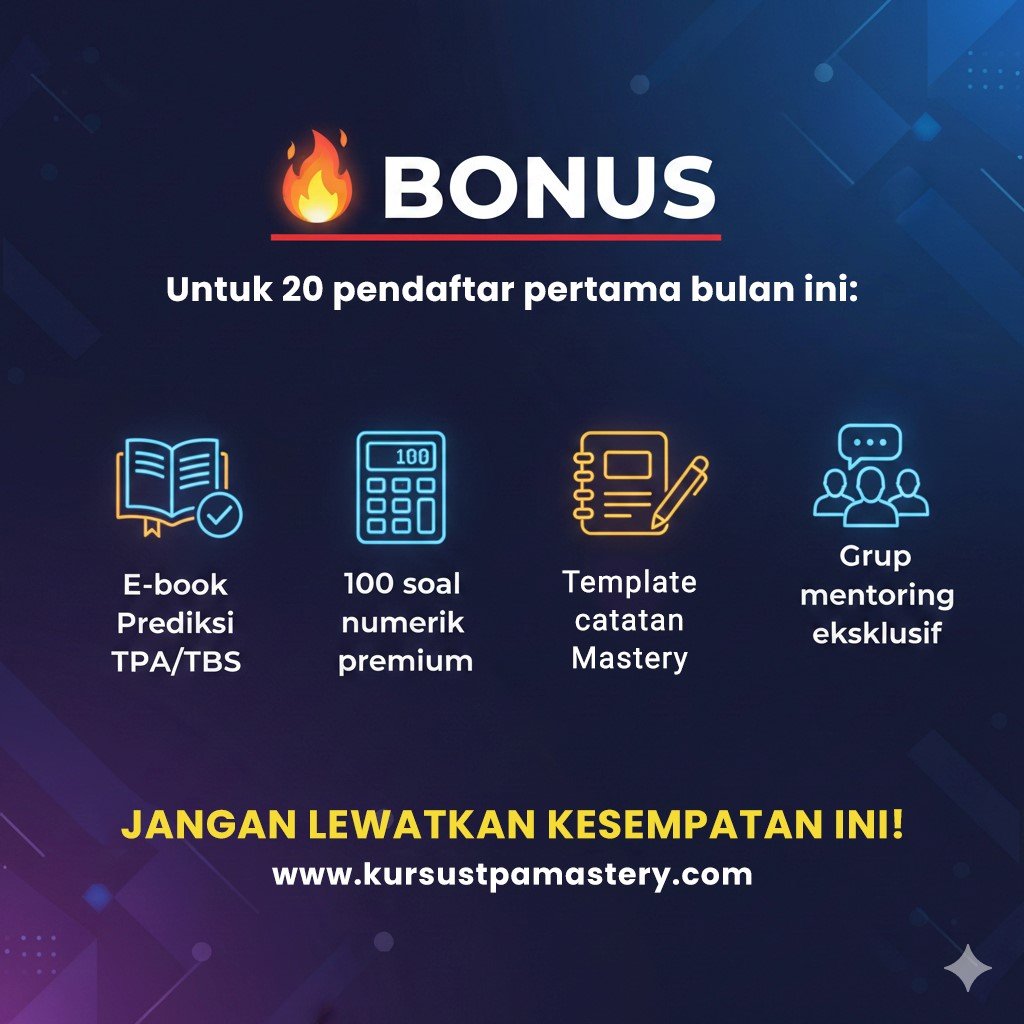 Ratusan peserta sudah membuktikan bahwa dengan metode yang tepat, skor TPA bisa naik jauh lebih cepat dari yang dibayangkan.