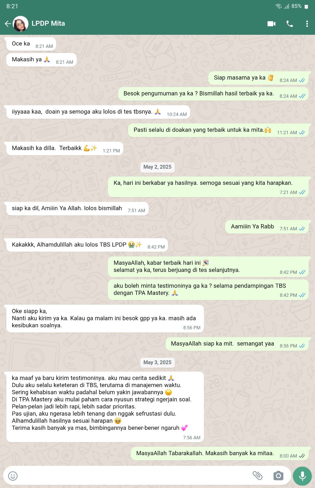 Program Mastery dirancang untuk menjadi pusat persiapan paling lengkap dan terpercaya untuk TPA, TBS, Beasiswa, TOEFL, IELTS, Kedinasan, hingga karier profesional.