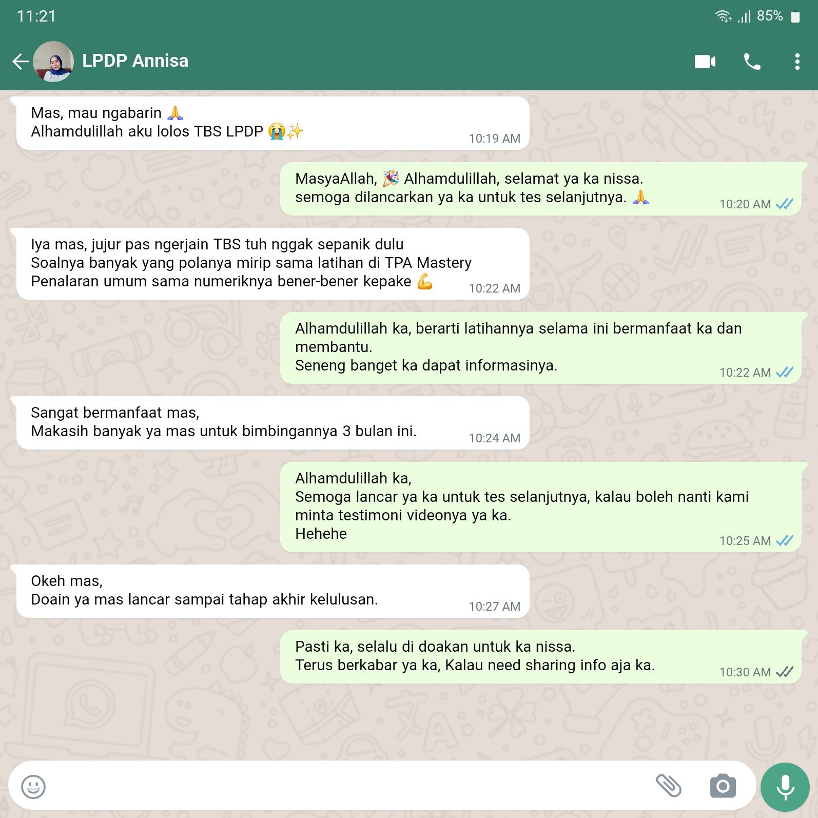 Dibimbing mentor berpengalaman, sistem belajar fleksibel, latihan terstruktur berbasis Mastery Framework dan evaluasi personal untuk memastikan skor Anda naik signifikan. Klik tombol dibawah ini untuk konsultasi program bimbel atau kursus TPA Mastery.